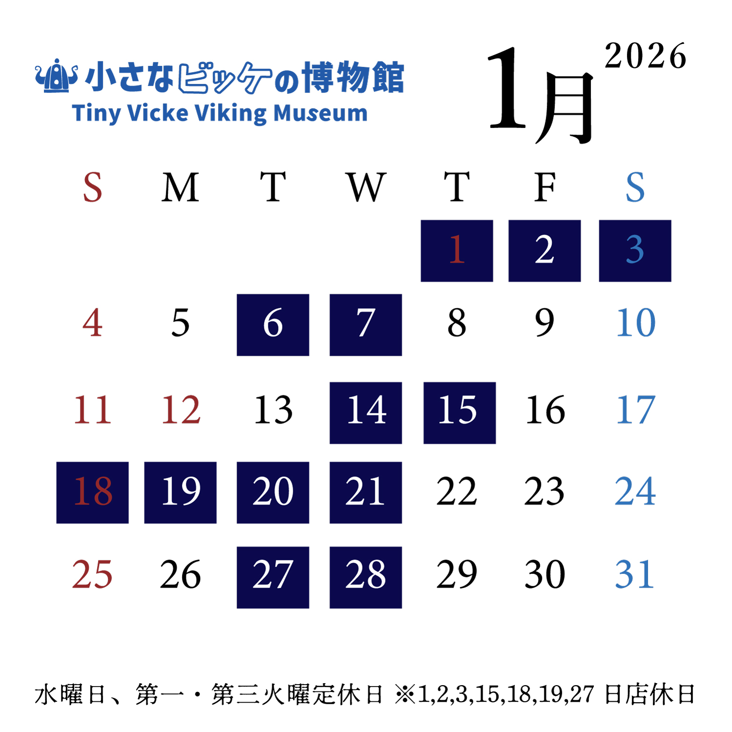 水曜日,第一・第三火曜日 その他、臨時休館日